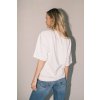 Zvolily jsme overized střih, který je mírně cropnutý (délku najdeš níže). Dále má tričko mírně zpevněná ramena, kulatý výstřih a všitou zpevňující lemovku za krkem. Spodní lem je zakončen speciálním dvojitým švem, který je pevnější, ale zároveň elastický.