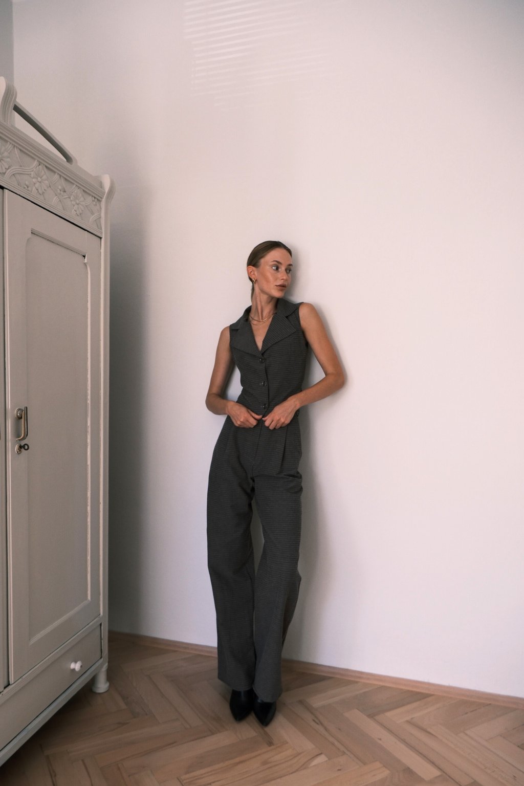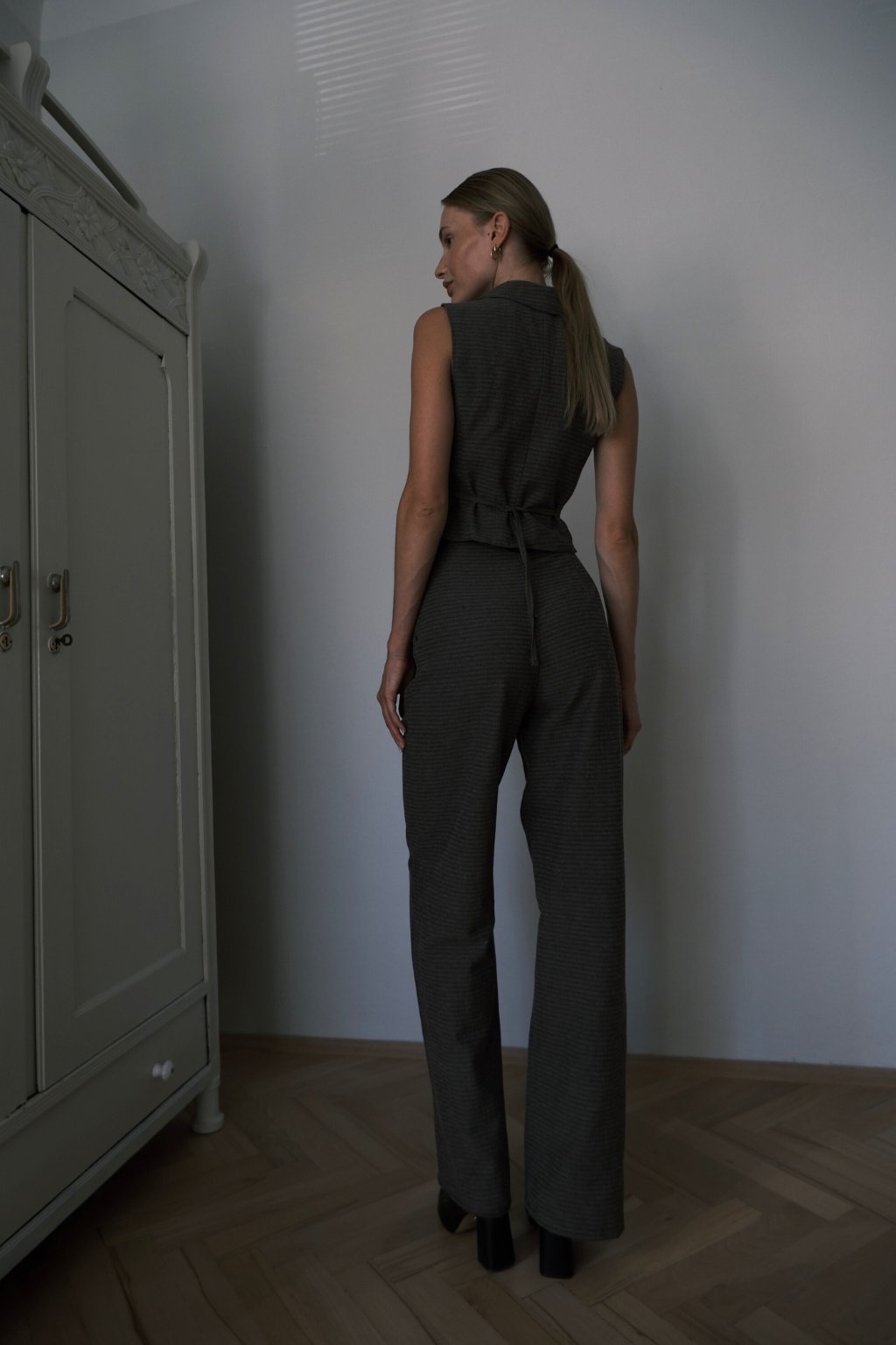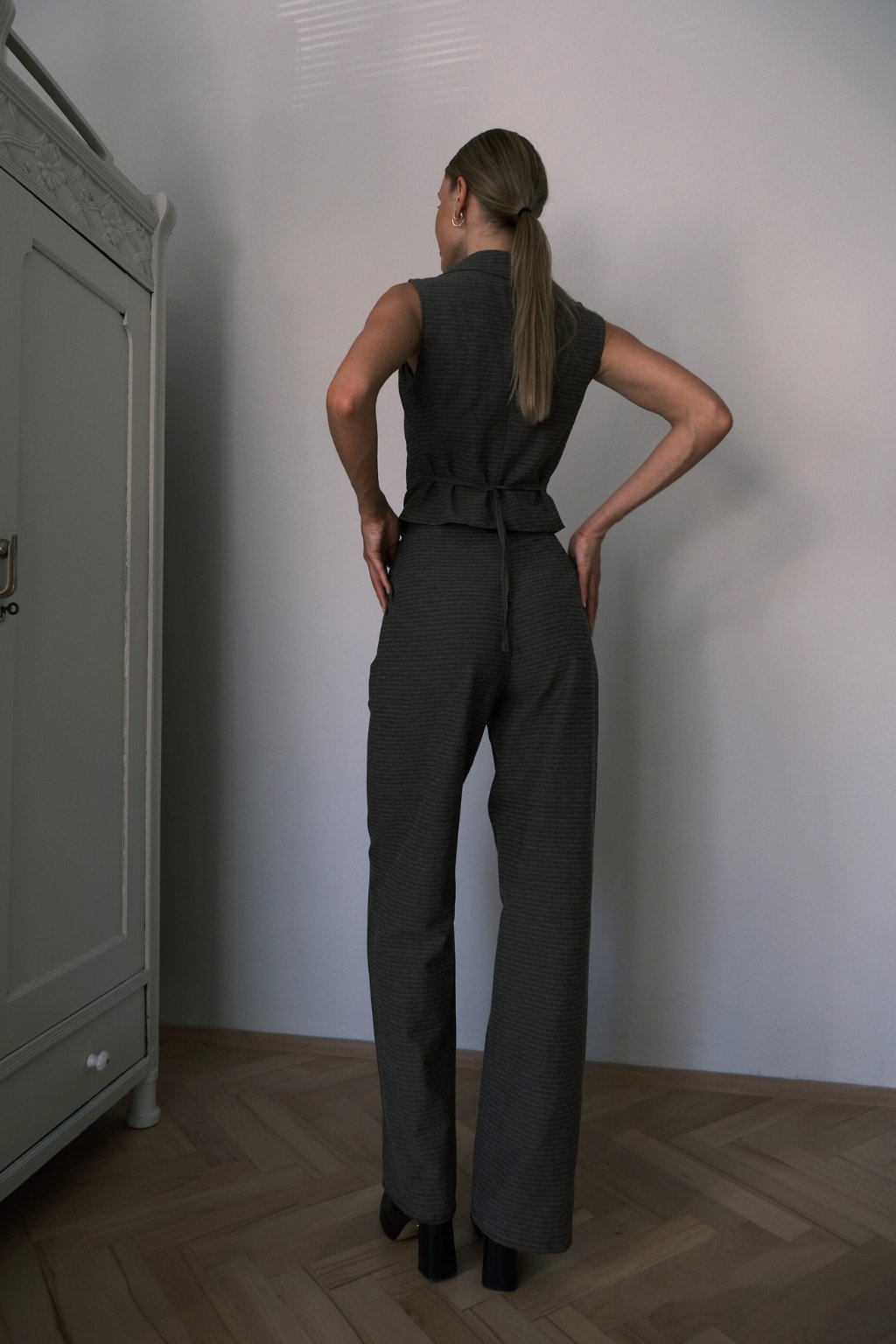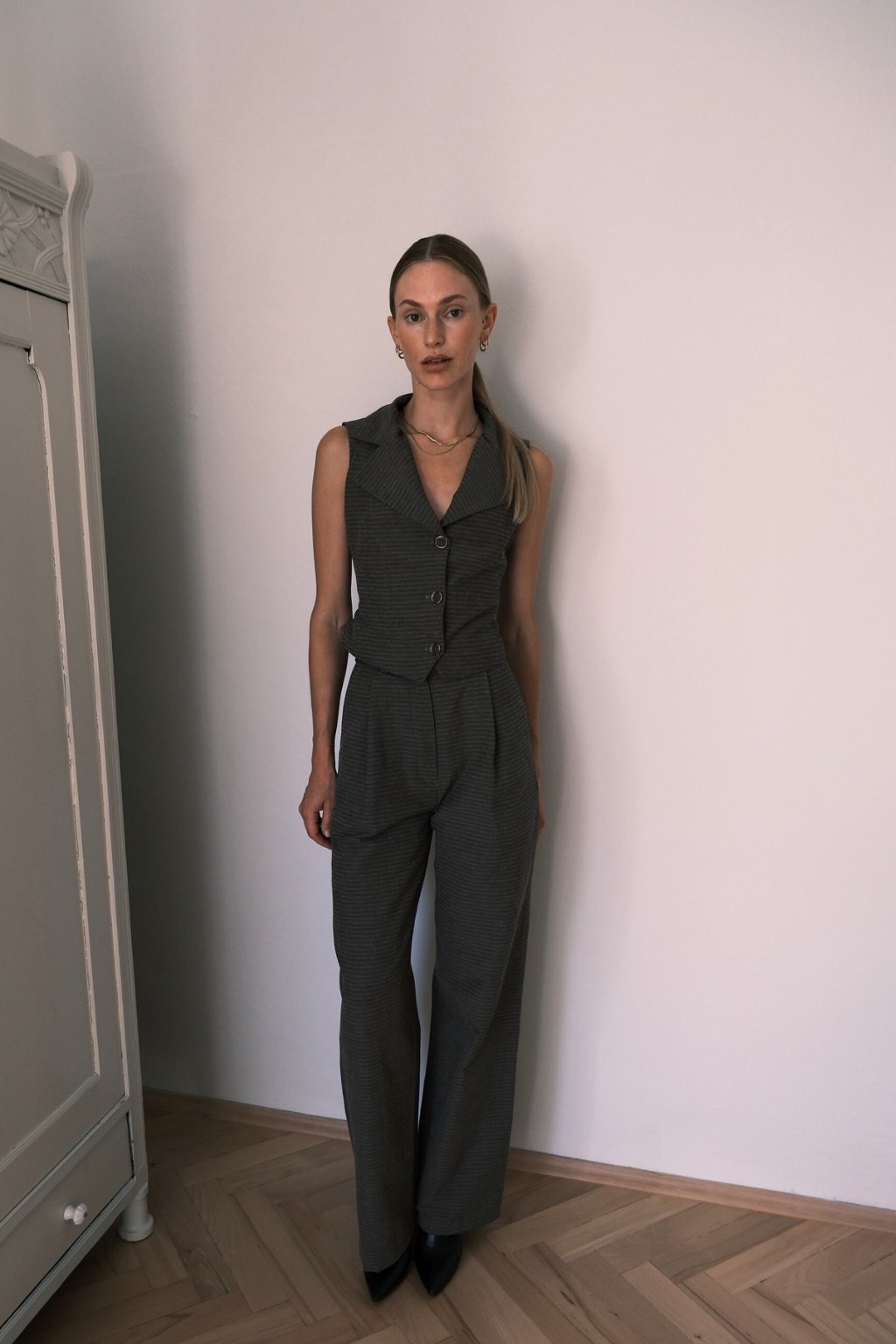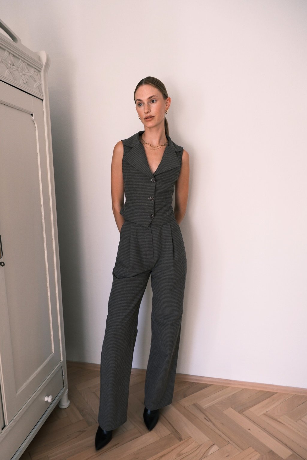 Elegantní kalhoty jsme ušily v rovném střihu, mají dlouhé širší nohavice, které jsou neuvěřitelně pohodlné a navíc Ti vykouzlí nádhernou postavu.