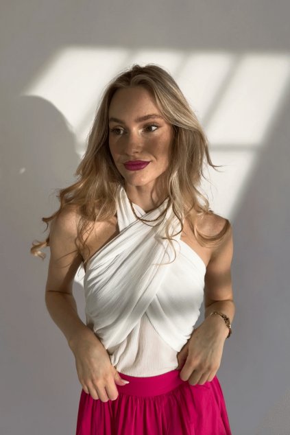 Šaty mají v pase šňůrky pro jeho zvýraznění. Šňůrky si můžeš zavázat na více způsobů. Zvolily jsme áčkový střih, který tvoří hezkou siluetu postavy.