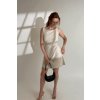 Mají širší ramínka a kulatý výstřih. Vzadu se zapínají na skrytý zip pro snadnější oblékání. Pro šaty jsme zvolily lněnou látku s viskózou, která je jemnější na těle než 100 % len a není ani tak mačkavá. Látka je velmi příjemná, vzdušná a má dostatečnou gramáž, aby neprosvítala.
